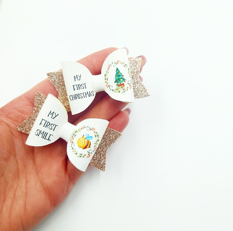 16 Babies Age by Weeks/Months Dinky Leatherette Bow Loops