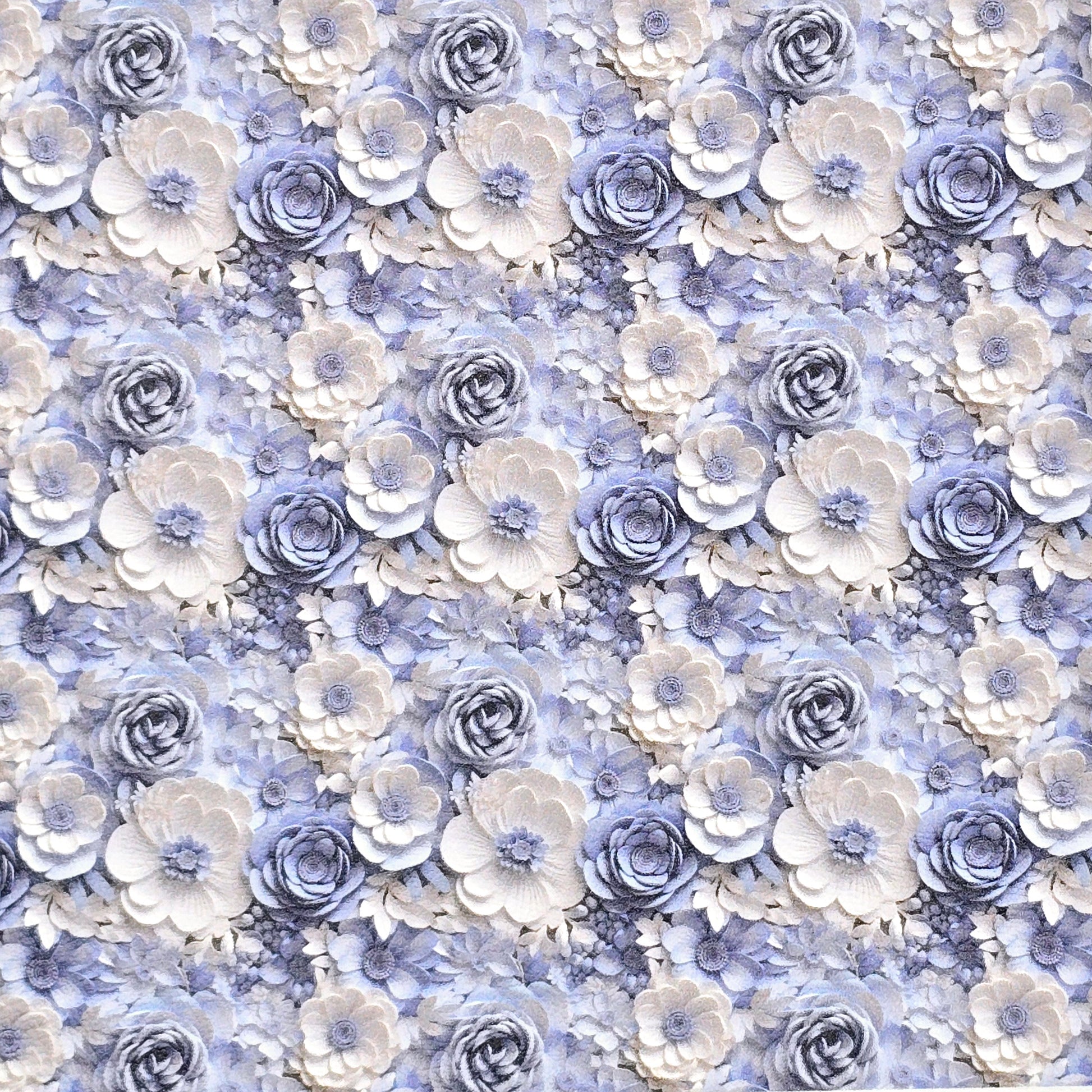 Blue and White 3D Floral Artisan Leatherette